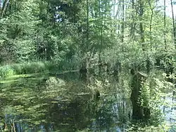 Im Naturschutzgebiet mit seinen Erlenbruchwäldern, Seggenrieden sowie mit Röhricht bewachsene Feucht- und Nasswiesen kommen Kammmolche, Knoblauchkröten, Laub- und Springfrösche, Weißstörche, Breitblättrige Stendelwurze und Feuersalamander vor.