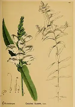 - Kahle Schildblume (Chelone glabra L.): Sie ist in Nordamerika im zentralen und östlichen Kanada und in den zentralen und östlichen Vereinigten Staaten weitverbreitet.[2]