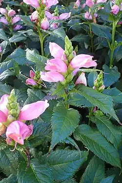 - Schiefe Schildblume auch Schlangenkopf oder Miesmäulchen genannt (Chelone obliqua L.): Sie kommt in mehreren Varietäten in den südöstlichen Vereinigten Staaten vor.[1]