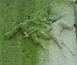 Die bedeutendste künstlerische Darstellung der Jaxa-Sage bildet das Schildhorndenkmal, das der Architekt Friedrich August Stüler nach Bleistiftskizzen Friedrich Wilhelms IV. von Preußen entwarf. Das Denkmal gehörte zu einer bildhauerischen Dreiergruppe, mit denen der König in den „oft todten uninteressanten Gegenden“ der Mark Brandenburg Wendepunkte der Landesgeschichte markieren wollte.[33] Das Lieblingsobjekt des „Romantikers auf dem Thron“ war das Schildhornkreuz, dessen Sage „die königliche Phantasie in ihrem urchristlichen Gehalt am stärksten angeregt und zur eigenwilligsten Denkmallösung der Dreiergruppe geführt“ hat.[34]