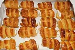 Schillerlocken, insbesondere in Österreich auch als Schaumrollen bezeichnet, sind ein tüten- oder rollenförmiges Gebäck aus Blätterteig, das gesüßt mit Schlagsahne oder Creme, ungesüßt mit Ragouts, Salaten oder Pürees gefüllt wird.[1]