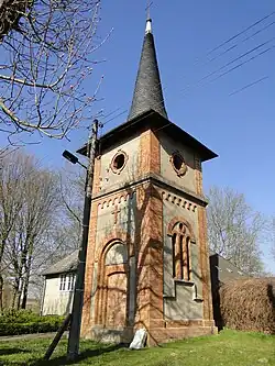 - Kirche von 1952 mit denkmalgeschütztem Kirchturm von 1891