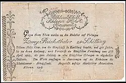 Im Zuge des dänischen Staatsbankrotts 1813 wurde die Währung der Herzogtümer – sowie des dänischen Kernstaats – auf Reichsbanktaler (Rigsbankdaler) und Reichsbankschillinge (Rigsbankskilling) umgestellt. Da viele laufende Zahlungsverpflichtungen auf Schilling Schleswig-Holsteinsch Courant lauteten und zudem in Hamburg und Lübeck weiter nach Courant-Schillingen gerechnet wurde, hielt die Bevölkerung der Herzogtümer jedoch weitgehend an der alten Währungsrechnung fest. Es wurde daher am 18. Dezember 1841 verfügt, dass auf einigen der Rigsbank-Münzen zusätzlich eine Wertangabe in Schilling Schleswig-Holsteinisch Courant erfolgen sollte.