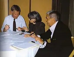 - ↑ Louise Roug: A spirit of resistance builds In: Los Angeles Times, 8. August 2003