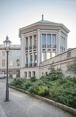 Der 1969 von dem Architekten Richard Paulick erbaute Pavillon liegt im Park des Kronprinzenpalais. Zu Zeiten der DDR war in dem Gebäude das Restaurant Schinkelklause untergebracht. Das rundum verglaste, oktogonale Gebäude mit einem flachen Zeltdach verbindet Elemente aus Klassizismus und Moderne. In den Eingangsbau des Gebäudes, das durch einen Brückenbau über der Oberwallstraße mit dem ebenfalls von Richard Paulick von 1952 bis 1954 im neubarocken Stil erbauten Funktionsgebäude der Staatsoper Unter den Linden verbunden ist, wurde ein Portal aus Eisenkunstguss (entstanden um 1835) nebst Terrakottareliefs aus der 1962 abgerissenen Berliner Bauakademie von Karl Friedrich Schinkel integriert. In die Fassade des Oktogons wurde Terracottaplatten aus der Bauakademie eingebaut.
