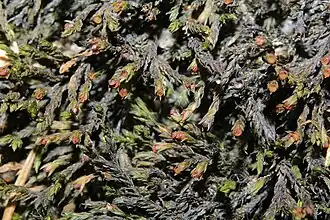 Die Pflanzen sind bis 15 Zentimeter lang, stark und unregelmäßig verzweigt und bilden mittelgroße bis große, olivgrüne oder dunkelgrüne bis schwärzliche, büschelige Rasen. Der Stämmchenquerschnitt zeigt einen deutlichen Zentralstrang. Die eiförmigen Blätter sind gekielt und oft einseitswendig, die Blattspitze ist spitz bis stumpf und gewöhnlich kahnförmig. Die sehr kräftige Blattrippe endet vor oder in der Blattspitze. Eine Glasspitze fehlt. Die Blattränder sind flach oder wenig zurückgebogen und in der oberen Blatthälfte oft durch vorspringende Zellecken gezähnt. Die Lamina ist gewöhnlich einzellschichtig, nur am Rand und im oberen Blattteil kann sie zum Teil zweizellschichtig sein. Die Zellen sind in der oberen Blatthälfte meist isodiametrisch.