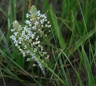 An einer Zwiebel werden in einer Blühsaison einer oder zwei mehr oder weniger lange, stielrunde Blütenstandsschäfte gebildet, auf denen ein dichter, konischer oder zylindrischer, traubiger Blütenstand steht, der viele Blüten enthält. Es sind schmale Tragblätter vorhanden. Die drahtigen, oft fein behaarten Blütenstiele sind anfangs kurz und strecken sich während des Aufblühens.[2]