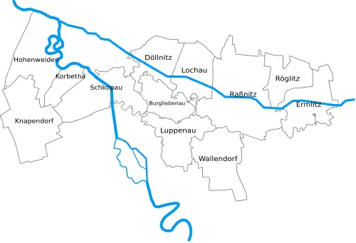 | Ermlitz | 1.592 | Ermlitz, Oberthau und Rübsen |