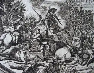 - ↑ Eine genaue Aufstellung der verschiedenen Regimenter in Leander Heinrich Wetzler, Feldzüge des Prinzen Eugen von Savoyen, Bd. III, S. 191 f.