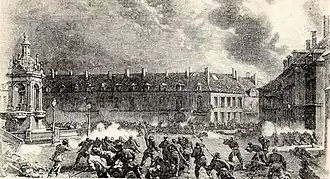 Die Preußen erreichten den Ortsrand, wo sie in einen langen und blutigen Häuserkampf mit regulären Einheiten und Freischärlern verwickelt wurden. Dieser Kampf dauerte noch bis lange nach Einbruch der Dunkelheit an, bevor sich die Franzosen ergaben. Nach diesem auch irregulär geführten Kampf wurden an einigen aufgegriffenen Einwohnern Strafmaßnahmen vollzogen, Teile der Stadt wurden dabei in Brand gesteckt.