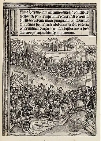 ![]() Zeitgenössische Darstellung der Schlacht von Wolf Traut in der Ehrenpforte Maximilians I. | |||||||||||||||||