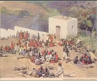 ![]() Kriegslager in der Boma von Mahenge, Gemälde von Friedrich Wilhelm Kuhnert | |||||||||||||||||