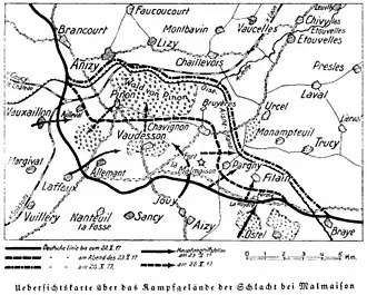 Südwestlich von Malmaison, beim Dorf Laffaux (49° 26′ 54,9″ N, 3° 25′ 35,8″ O), beschrieb die Frontlinie einen scharfen Bogen. Von deutscher Seite wurde dieser Frontabschnitt als „Laffaux-Ecke“ bezeichnet.[8] Da von hier der Hauptangriff erfolgte, wird die Schlacht auf Deutsch manchmal auch nach diesem Ort benannt.