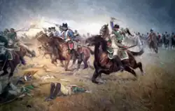 „Das Feuer der gegnerischen Infanterie begann im Zentrum ihrer Formation und zog sich dann fortschreitend bis zu ihren Flügeln, und als wir nur noch 15 Schritte entfernt waren, versuchten die Pferde auszuweichen, indem sie sich nach links und rechts warfen. Die Kraft dieses gewaltigen Drucks wurde enorm. Die Männer waren nicht länger in Lage, ihre Pferde zu kontrollieren, und die Masse häufte sich so tief an, dass höchstens acht bis zehn Männer einer jeden Schwadron im Sattel blieben. Diese wurden sofort davon getragen, und auch wenn es einigen gelang, in die gegnerischen Reihen einzubrechen, so waren sie doch zu wenige, um dort eine Wirkung zu erzielen. Nur wenige Männer wurden durch das feindliche Feuer getötet, doch viele erlitten Quetschungen und gebrochene oder verrenkte Gliedmaßen, und andere erstickten oder wurden unter den Hufen der Pferde niedergetrampelt, nachdem sie aus dem Sattel gefallen waren.“