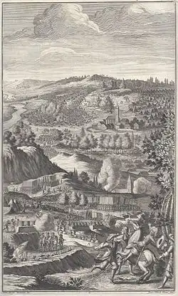 - ↑ Pieter Valckenier, Andreas Müller: Des Verwirreten Europae Continuation, von A(nn)o 1673 bis 1676 (Bd.2). Des Verwirreten Europae Continuation, oder Wahre Historische Beschreibung derer in der Christenheit, für nehmlich aber in dem Vereinigten Niederlande, Teutschland, und hernach in den angräntzenden Reichen, Fürstenthümern und Herrschafften, zeither dem Jahre 1673. biß auff das Jahr 1676. durch die Waffen des Königes in Franckreich erregter blutiger Kriege, leidigen Empörung und Verwüstung, Amsterdam 1680, S. 735, MDZ der Bayerischen Staatsbibliothek; abgerufen am 8. Januar 2021.
