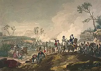 Die Koalitionstruppen erreichten und passierten Champaubert. Blücher ordnete persönlich ein oder zwei Bataillone[6] ab, die Champaubert gegen die langsam nachrückenden französischen Truppen halten sollten. Allein auf sich gestellt gegen die napoleonische Übermacht und ohne Verbindung zum Gros gingen diese Bataillone beim folgenden Ansturm der französischen Truppen auf Champaubert unter. Flüchtende holten die Reiter der französischen Gardekavallerie ein; nur 20 Mann konnten sich noch nach Étoges durchschlagen.