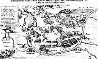 - Historische Karte von 1627: Abriss der Schlacht, so zwischen Herrn Marggrafen von Durlach und Monsieur Tylli, als Kays. und Bayrischen Generaln vorgangen