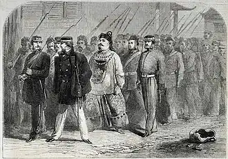 ![]() Die Gefangennahme von Ye Mingchen durch die Briten am 5. Januar 1858 | |||||||||||||||||