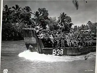 Die Invasion von Leyte war die umfangreichste amphibische Operation, die von amerikanischen und alliierten Kräften im Pazifikkrieg bis dahin durchgeführt wurde. General MacArthur bestimmte man zum Oberkommandierenden der See-, Luft- und Landstreitkräfte für die Operation. Die alliierte Marine- und Luftunterstützung bestand hauptsächlich aus der 7. US-Flotte unter Vizeadmiral Thomas C. Kinkaid. Diese Flotte sollte die Landungstruppen befördern, an den Stränden absetzen und unterstützen. Die Royal Australian Navy steuerte als zweitgrößter Flottenanteil fünf Kriegsschiffe, drei Landungs- und fünf Versorgungsboote zur siebten Flotte bei. Leyte wurde im Dezember 1944 endgültig erobert.[3]