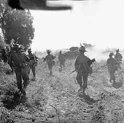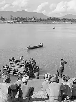 ![]() Soldaten der 2. Division des britischen Dorset-Regiments überqueren am 28. Februar 1945 den Irrawaddy bei Ngazun, Burma | |||||||||