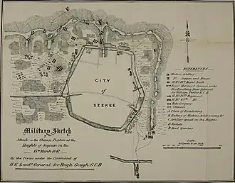 ![]() Karte der Schlacht mit der Stadt Ciqi im Zentrum, aus einem britischen Geschichtswerk über die Madras Pioneers, Erstveröffentlichung 1883 | |||||||||||||||||