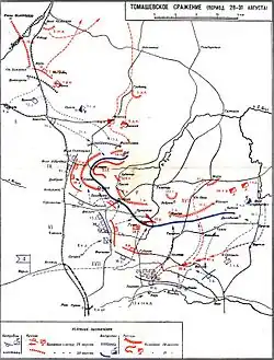 Seit 25. August war die 4. Armee mit drei Korps (II. Korps unter General der Infanterie Schemua, VI. Korps unter General der Infanterie von Boroević und IX. Korps unter Feldmarschalleutnant von Friedel, ab 27. August General Hortstein) im Vorgehen auf die Linie Zamość–Tomaszów, das XVII. Korps (General der Kavallerie Graf Huyn) folgte hinter dem VI. Korps nach, am rechten Flügel ging die Korpsgruppe (XIV.) des Erzherzog Joseph Ferdinand aus den Raum Rawa Ruska nach Norden vor. Den rechten Flügel nach Osten deckte das Kavalleriekorps des FML Wittmann, sie hielt Verbindung zur 3. Armee (General Rudolf von Brudermann), welche den Raum Lemberg nach Osten gegen das Vorgehen der russische 3. Armee (Gen. der Inf. Russki) deckte.