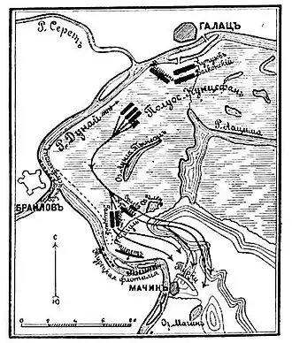 Die türkische, etwa 80.000 Mann starke, Armee war in einem Lager vor der Einmündung eines Donauarms in den Hauptstrom, etwa 15 km östlich von Brăila und 20 km südwestlich von Galatz, zwischen Babadag und Măcin konzentriert. Das Heer wurde vom osmanischen Groß-Wesir Koca Yusuf Pascha geleitet. Die russische Südarmee (3 Divisionen mit etwa 30.000 Mann und 78 Kanonen) unter dem Oberbefehlshaber Nikolai Wassiljewitsch Repnin beschloss den Gegner zu umgehen, um die osmanische Hauptarmee zu überraschen. Dazu begannen die russischen Truppen am 12. Junijul. / 23. Juni 1791greg. die Donau bei Galatz zu überqueren.