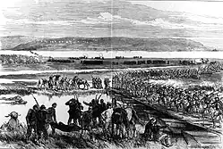 Von Zimnicea kommend, erfolgte dann am 26. Juni die erste Landung des VIII. Armeekorps unter General Fjodor Radezki mit Ruderbooten und Prahmen. Zuerst landete die 14. Infanterie-Division unter General Dragomirow, der in einer Ansprache vor seinen Soldaten meinte: Soldaten, entweder überquert ihr die Donau oder ihr geht in ihr unter ! Der folgende Kampf um den Besitz des Brückenkopfes von Swischtow dauerte von 3 Uhr früh bis 2 Uhr Nachmittag, also volle 11 Stunden. Als der Brückenkopf gefestigt war, wurden weitere Fahrten mit einem Dampfer und zwei Leichtern durchgeführt. Die Russen konnten am 27. Juni 1877 die Stadt Swischtow besetzen.[1]