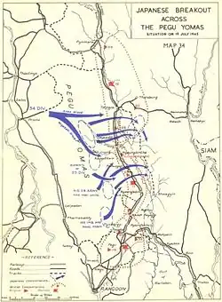 Am 2. Juli 1945 hatte eine Gurkha -Patrouille eine kleine japanische Truppe besiegt und eine Versandtasche erbeutet, die unter anderem den vollständigen Einsatzplan für den japanischen Ausbruch enthielt. Die Japaner planten in drei Kolonnen zum Sittang vorzurücken, wobei strenge Einsatzregeln galten. So war der Einsatz von Schusswaffen zugunsten des Bajonetts verboten und jegliche Funkkommunikation eingestellt, bis sie den Sittang auf einem Bambusfloß überquert hatten. Sakurai Shōzō unterschätzte jedoch die gegen ihn aufgestellte britisch-indische Streitmacht, glaubte aber, dass er die Hälfte seiner erschöpften Streitkräfte in Kampfform bringen könnte.
