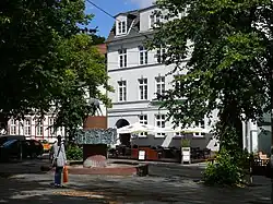 - Nr. 7: 2-gesch. klassizistisches Gebäude von der Mitte des 18. Jh. mit hohem Schweifgiebel; früher Gasthaus, ab 1915 Soldatenheim, 1924 Sitz der Städtischen Volksbücherei, 1928–1931 auch Saalnutzung als Wärmehalle für Erwerbslose, 1934–1939 Nutzung durch die NSDAP, nach 1945 Volksmusikschule, ab 1963 Staatliches Sinfonieorchester, nach 1994 bis um 2019 die Jüdische Gemeinde.[4]