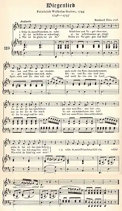 - ↑ Wiegenlieder (25): "Schlafe, mein Prinzchen, schlaf ein". In: zeit.de. 15. Mai 2010, abgerufen am 8. Oktober 2016.