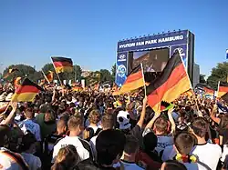 Michael Ebmeyer schreibt in der Tageszeitung Die Welt, dass das „Flaggenmeer“ 2006 ausgebrochen sei und das „Spektakel“ sich „bei allen folgenden Länderspielturnieren mit deutscher Beteiligung“ wiederhole, dabei habe sich „Schwarz-Rot-Gold“ als „mehr oder weniger expliziter Dresscode beim Public Viewing“ etabliert.[14]