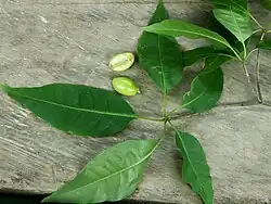 Es werden Steinfrüchte gebildet, die Früchte erscheinen einzeln oder zu zweien, die einzeln, einsamig oder verwachsen, zweisamig sein können.