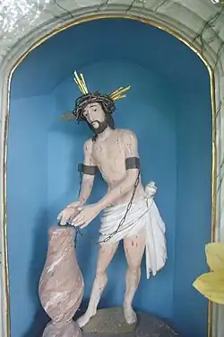 Die Schleifmühlkapelle ist ein kleiner Satteldachbau. An der Ostseite zur Straße hin ist ein vergittertes Fenster. Dahinter steht in einem kleinen, barock gestalteten Altaraufsatz eine Nachbildung der Figur des gegeißelten Heilands aus der Wieskirche.