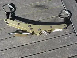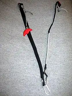 Eine Spreizrohrschleppklinke besteht aus einem Metall- oder Kunststoffbügel, der beidseitig horizontal am Gurtzeug befestigt wird, sowie einem Mechanismus, in den das Schleppseil eingehängt wird. Dieser Mechanismus ist durch einen Hebel auch unter Last sehr leicht auszulösen, so dass das Schleppseil schnell und sicher gelöst werden kann.[1] Spreizrohrschleppklinken für Hängegleiter sind teilweise mit einem doppelten Auslösemechanismus versehen, um das Umklinken zu erleichtern.