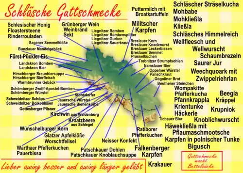 - Gerda Benz: Von Schweinevesper und Lachramfteln. Kleine Kulturgeschichte der schlesischen Guttschmecke. 3. Auflage, Husum 2008, ISBN 978-3-88042-830-0.