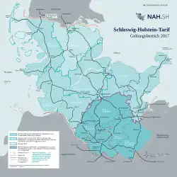 - ↑ a b c d e f Der SH-Tarif. NAH.SH, abgerufen am 22. August 2016.
