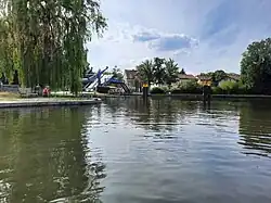 Das Becken der zweiten Schleuse wurde zugeschüttet und bildet heute den großen Platz zwischen dem Hotel Kranichsberg und der Mühle. Ihre Lage ist durch einen Grünstreifen erkennbar.