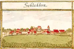 Eine historische Ortsansicht aus dem Kieserschen Forstlagerbuch vom Ende des 17. Jahrhunderts zeigt, dass die Güter Schlichtens wegen des hohen Wildschadens mit einem Zaun umgeben waren. Die Landwirtschaft konnte die Bevölkerung kaum ernähren, weshalb die Bauern auch den Wald nutzen mussten. Nur durch Waldweiden und Holzhandel konnten sie ihre Existenz sichern.