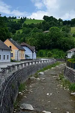 ![]() Der Schliefaubach in Randegg, kurz vor der Einmündung in die Kleine Erlauf | ||