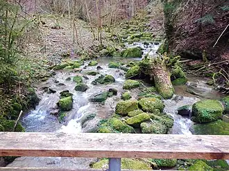 ![]() Blick bachaufwärts von der Schlittenbackbrücke unterhalb der unteren Mühle | ||