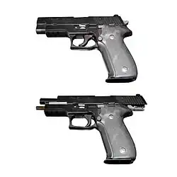 Nur der Schlittenfang am Schlittenfanghebel gewährleistet das sichere Ablegen der Pistole im Zustand „gesichert, entladen, mit offenem Verschluss“. Die Pistole ist in diesem Zustand durch manuell oder automatisch wirkende Sicherungen gesichert, das Magazin ist entfernt und das Patronenlager geleert, der Verschluss befindet sich in geöffneter Position. Die Pistole ist mit dem Auswurffenster nach oben abgelegt. Sicherheitspersonal oder der Schütze selbst sind in der Lage, den Zustand der Waffe mit einem Blick festzustellen.