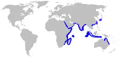 Die Art ist in weiten Teilen des Indischen Ozeans von Südafrika bis Indien, im Roten Meer und im Westpazifik von Japan über China und die Philippinen bis nach Nordaustralien verbreitet. Dabei kommt er nur in den Küstengebieten und den entsprechenden Flachwasserzonen von 7 bis 80 Metern Wassertiefe vor.