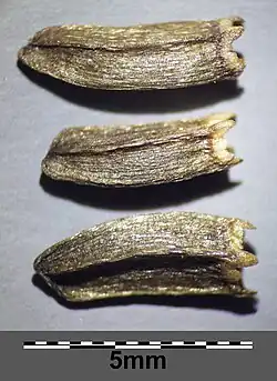 Die 3 bis 4,5 Millimeter langen Achänen besitzen einen kronenförmigen oder aus vier bis zu 1,5 Millimeter langen Schuppen bestehenden Pappus.