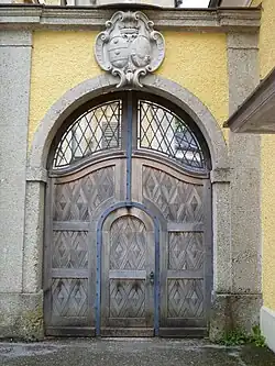 Am nördlichen Rundbogentor findet sich seit 1921 das marmorne Wappen der Grafen Revertera und der Fürsten Schwarzenberg. Am nördlichen Wirtschaftsgebäude sind vier Marmorplatten mit ehemaligen Grabsteinen des einstigen Friedhofes mit Totenköpfen mit je vier Fledermausflügeln aus dem 17. Jahrhundert eingemauert. Südlich des Hauptgebäudes wurde 1920 ein Anbau errichtet, in dessen ovaler Halle die im 17. Jahrhundert aus Carrara-Marmor angefertigte Büste des Kardinals Ippolito Aldobrandini, dem späteren Papst Clemens VIII. steht. Das Schlossgebäude macht heute einen heruntergekommenen Eindruck.