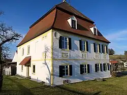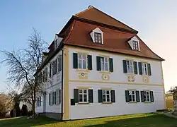 Es wurde 1788 von Joseph Adolph Freiherr von Hörwarth, dem Besitzer der Hofmark Aiterbach, im Stile des Barock errichtet. Der Bau ersetzte ein altes Schloss auf einem Turmhügel außerhalb des Dorfes, das Hörwarth abbrechen ließ.[1]