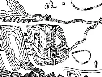![]() Darstellung der Burgruine Allersberg um 1600 | ||