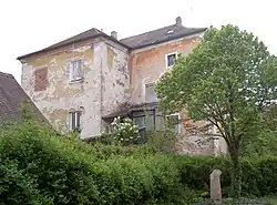 Das heruntergekommene, aber denkmalgeschützte[1] Gebäude des ehemaligen Schlosses ist ein dreigeschossiger Langflügelbau mit einem Walmdach aus dem 17. und 18. Jahrhundert. Das Südportal weist einen Sprenggiebel auf. Im Erdgeschoss befinden sich noch Gewölbe. Östlich ist ein Treppenturm angebaut; hier sind auch Teile des ursprünglichen romanischen Baus eingebaut. Der gegenüber liegende Steinstadel stammt von 1817.