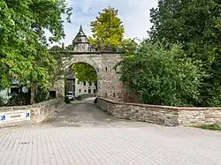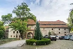 Nördlich des Alexandertores schließt sich der Vorhof an, an dessen nördlichem Ende man durch das als Andreastor bezeichnete Torhaus auf den Wirtschaftshof gelangt. Am Andreastor sind noch die Falze einer ursprünglich hier bestehenden Zugbrücke zu erkennen. Neben der eigentlichen Durchfahrt besteht noch eine Schlupfpforte. Über dem Tor befindet sich eine alte Tafel mit Doppelwappen und Inschrift.