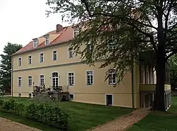 Die Orangerie wurde im 18. Jahrhundert zeitgleich mit dem Schloss errichtet und ist ein dreizehnachsiger verputzter Mauerwerksbau mit leicht hervorstehendem Mittelrisalit und Mansardwalmdach. Etwa 1996 wurde das Gut und Teile des Forstbestandes von der Familie des jüngsten Sohn des letzten Gutsbesitzers, Christoph von Wiedebach und Nostitz-Jänkendorf (1926–2010), erworben. Ihm folgte wiederum sein jüngster Sohn, Boris von Wiedebach und Nostitz-Jänkendorf und dessen Frau Katrin von Tippelskirch.[12] Nach dem Rückkauf fand um 2000 eine Sanierung der Orangerie statt. Sie wird heute durch den jetzigen Eigentümer bewohnt.